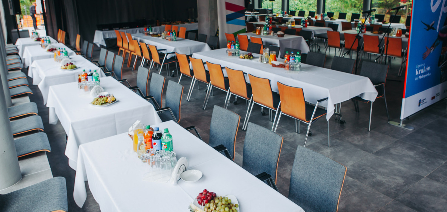 Przestrzeń pomieści od 8 do 24 osób. Bezpośrednio obok znajdują się dwa apartamenty dwupokojowe z aneksami kuchennymi oraz cztery pokoje z łazienkami typu 2+1, co pozwala na komfortowe zakwaterowanie uczestników.