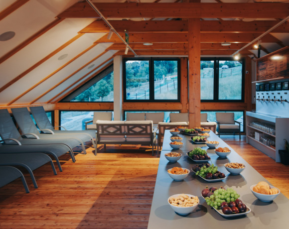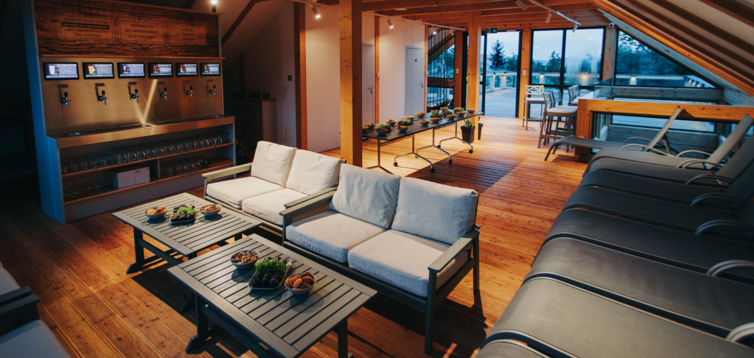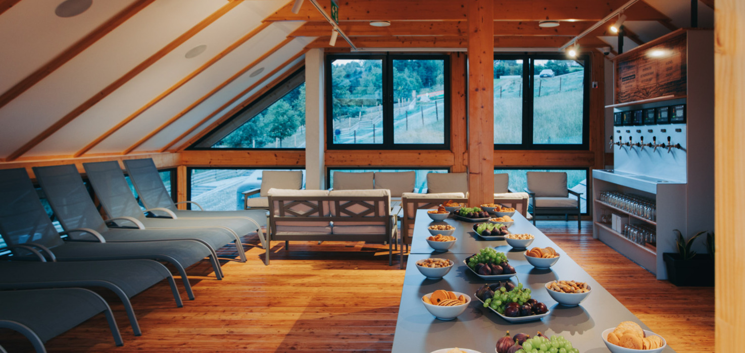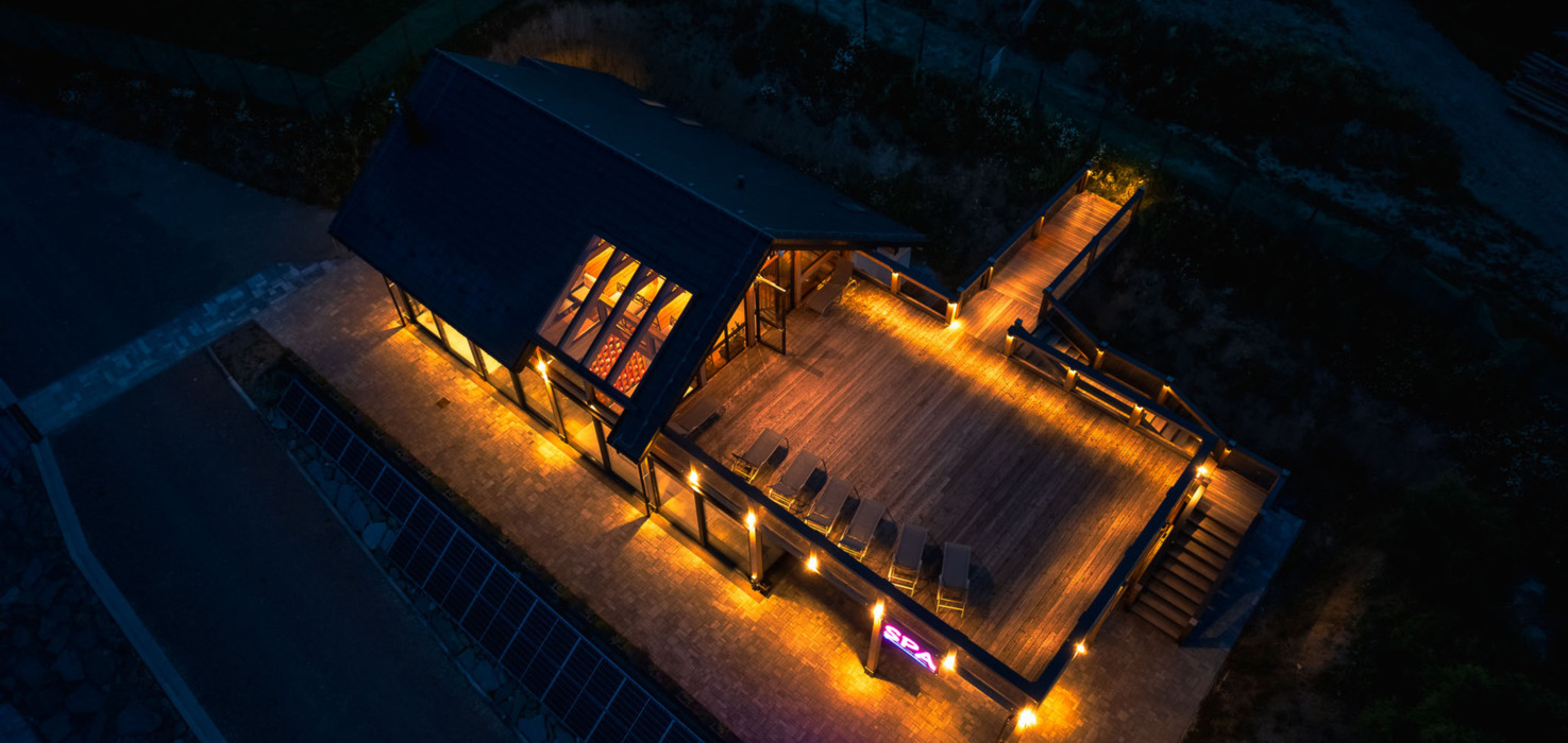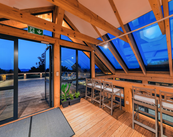 Obiekt może pomieścić do 120 osób w sezonie letnim. Piętro budynku SPA to przestrzeń stworzona do odpoczynku i nieformalnych spotkań. Wnętrze wyposażone jest w komfortowe leżaki, fotele i sofy, a także automatyczny barman, serwujący lokalne wino, piwo, cydr i inne napoje – idealny dodatek do chwil spędzanych w gronie bliskich lub współpracowników.